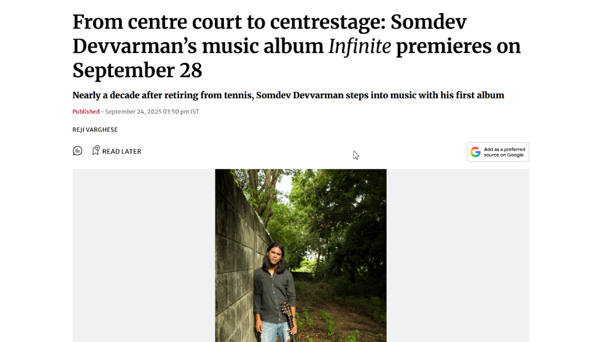 From centre court to centrestage: Somdev Devvarman’s music album Infinite premieres on (Sept - 2025)